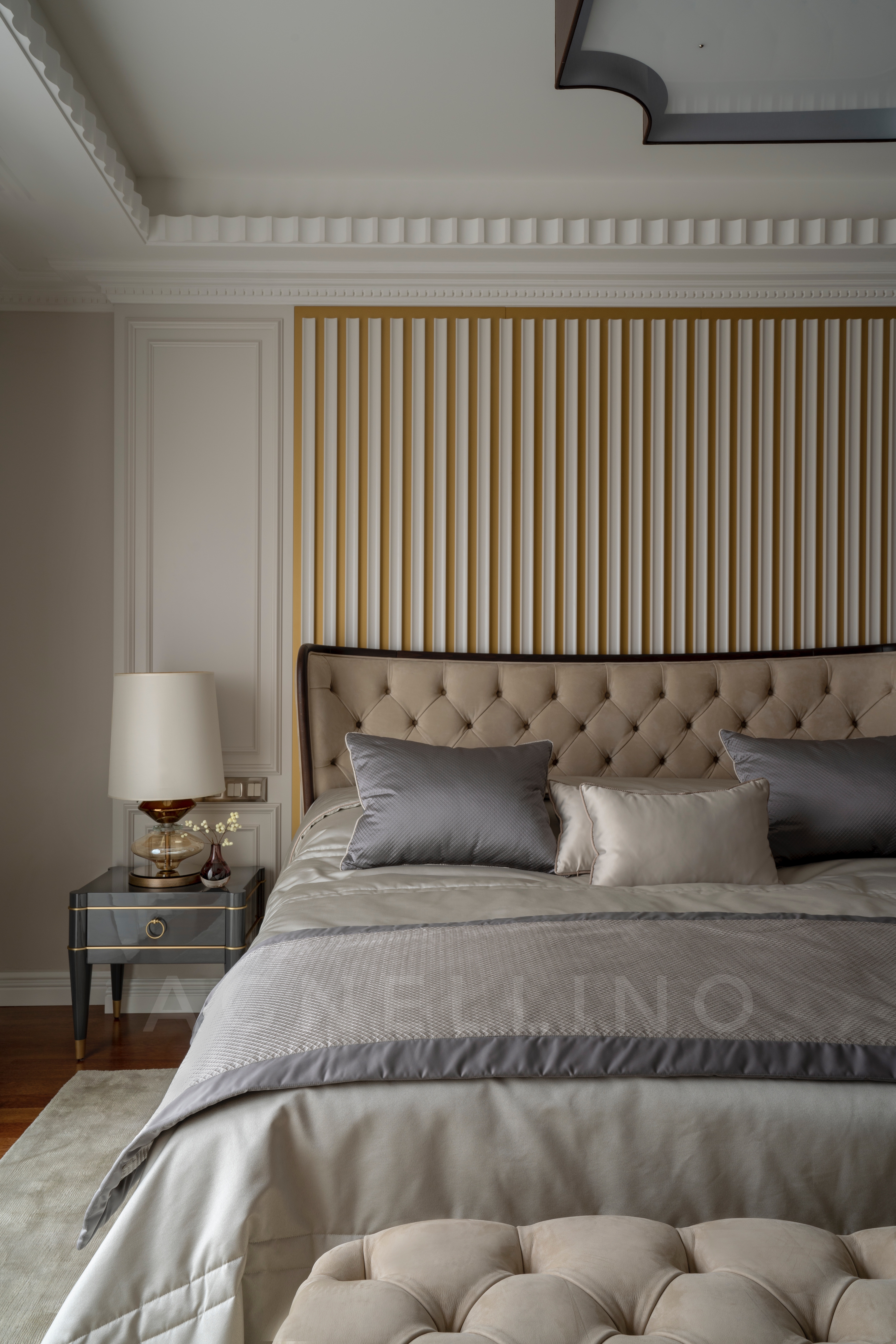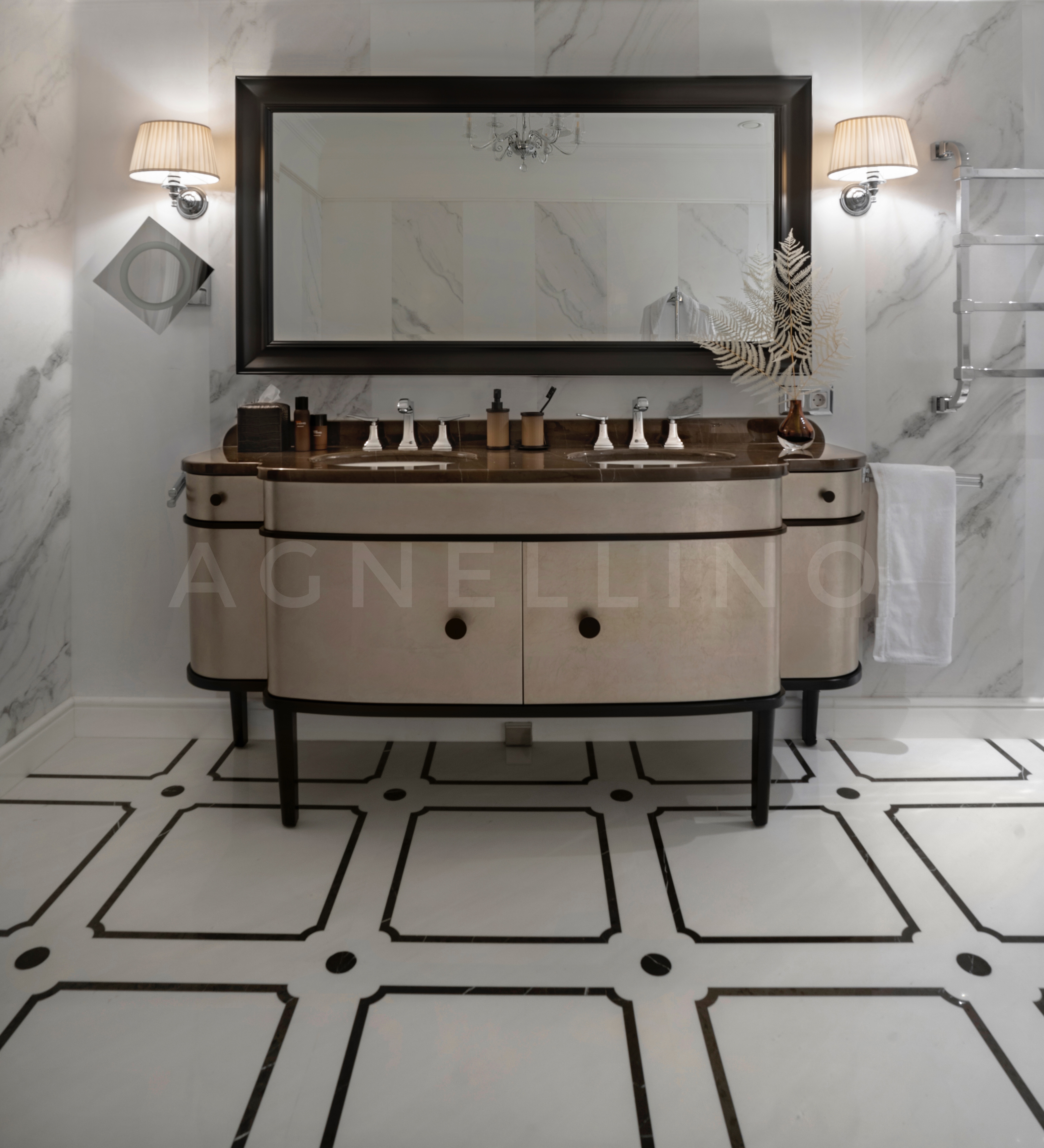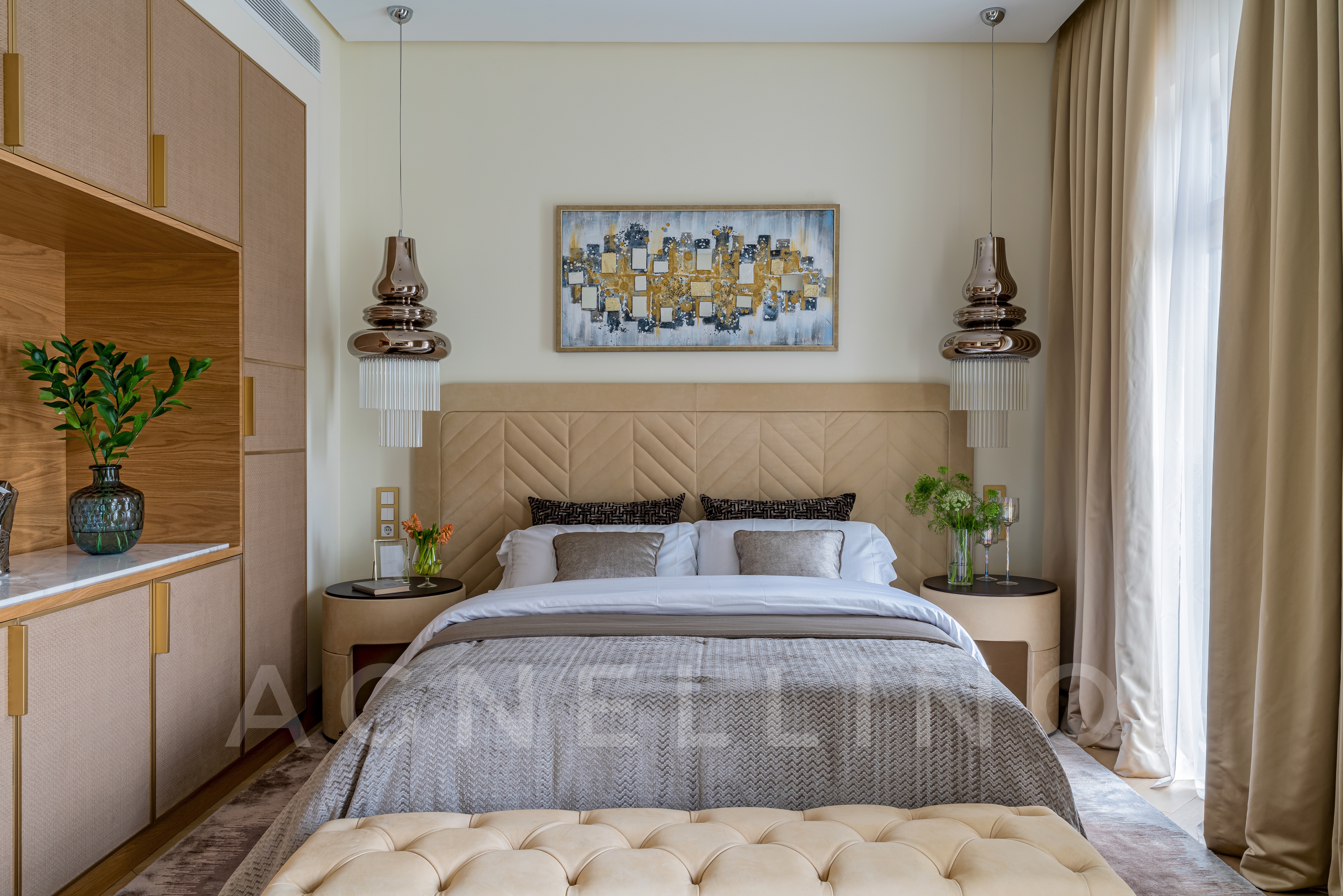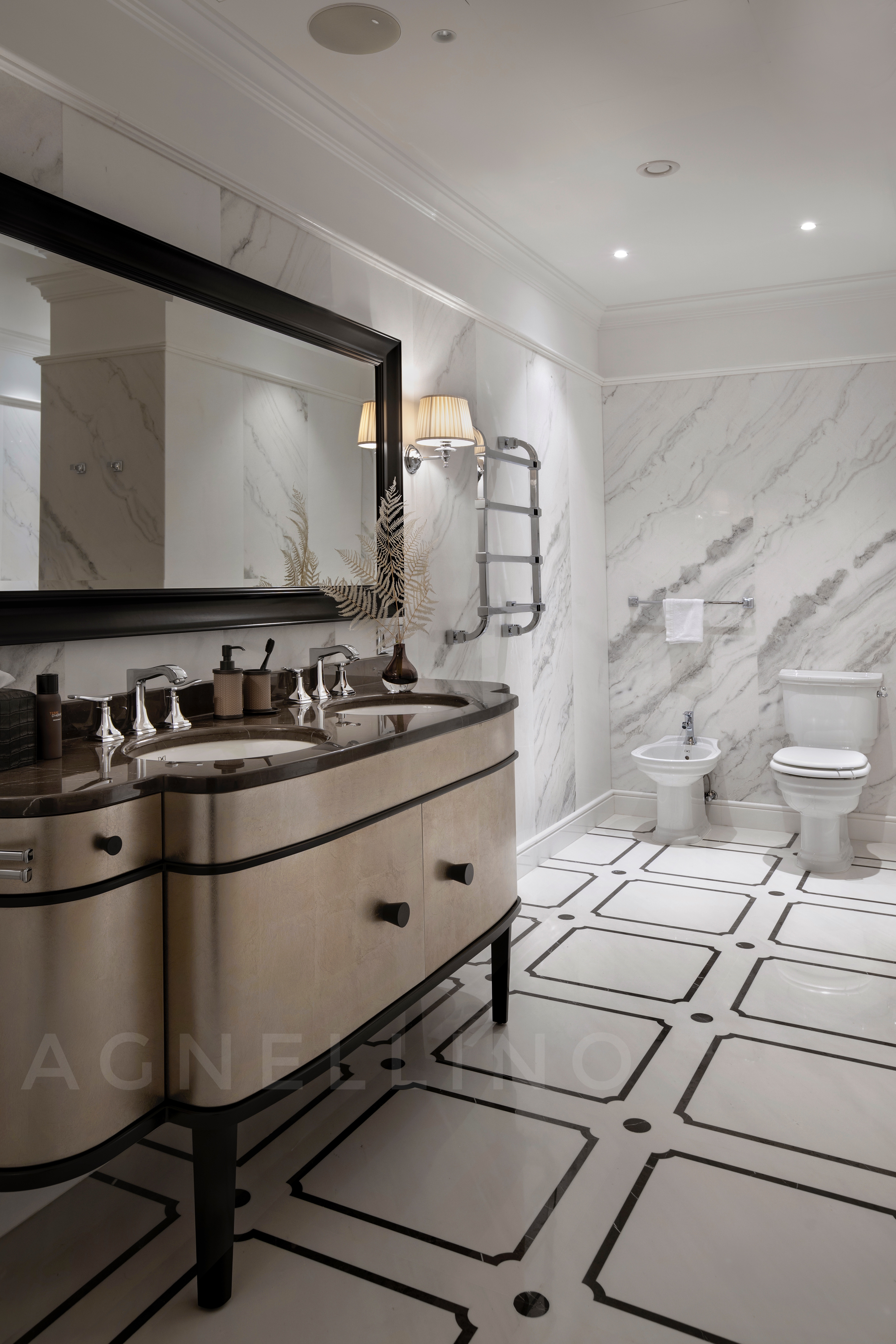 При создании интерьера ставилась задача совместить элегантный шик и достойную роскошь в духе Америки, вдохновившись работами дизайнеров Жана Луи Денио, Томаса Физанта, Келли Хоппен…