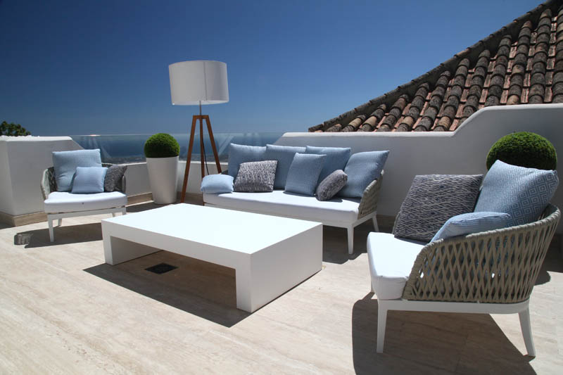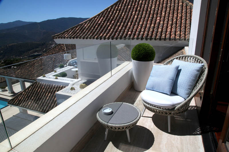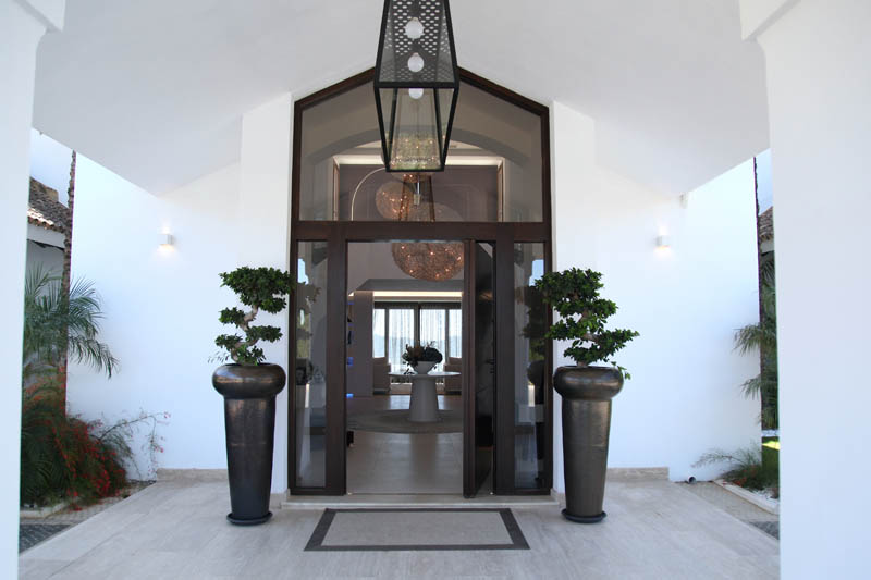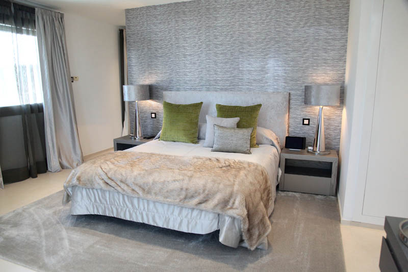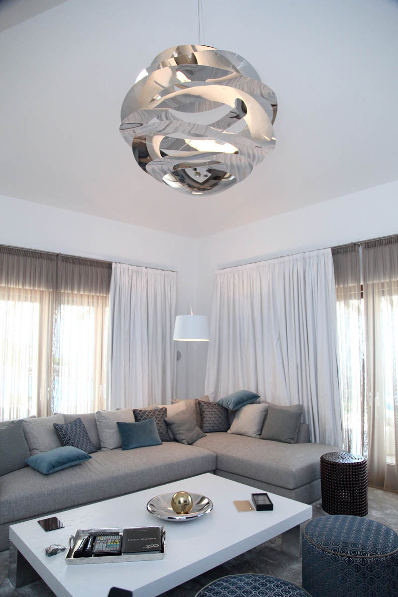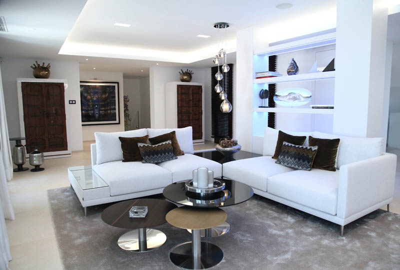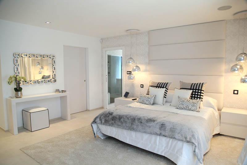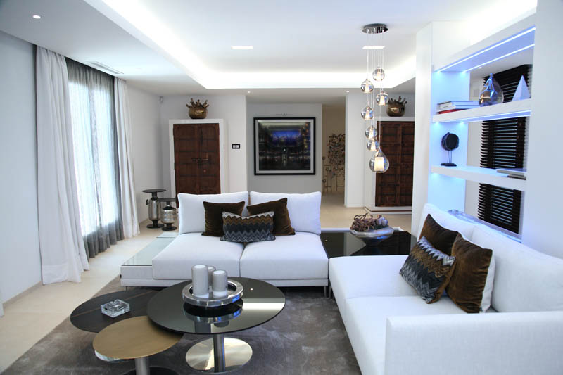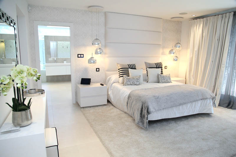 На этом объекте мы сотрудничали с известной испанской студией Юдизайн. Вилла в одном из самых живописных мест Новой Андалусии была перестроена из традиционного испанского дома. Во всех помещениях использован белый цвет стен. Он, как чистый лист, на котором яснее проявляются объемы и линии мебели, усиливаются оттенки тканей и декора. Все они должны быть сбалансированы и создавать гармоничное единство. В доме несколько спален, и каждая из них имеет свое настроение и свою цветовую гамму – монохромная бело-перламутровая с графичным текстильным декором, гостевые спальни разных оттенков.