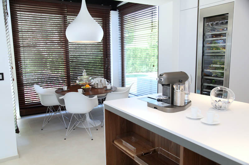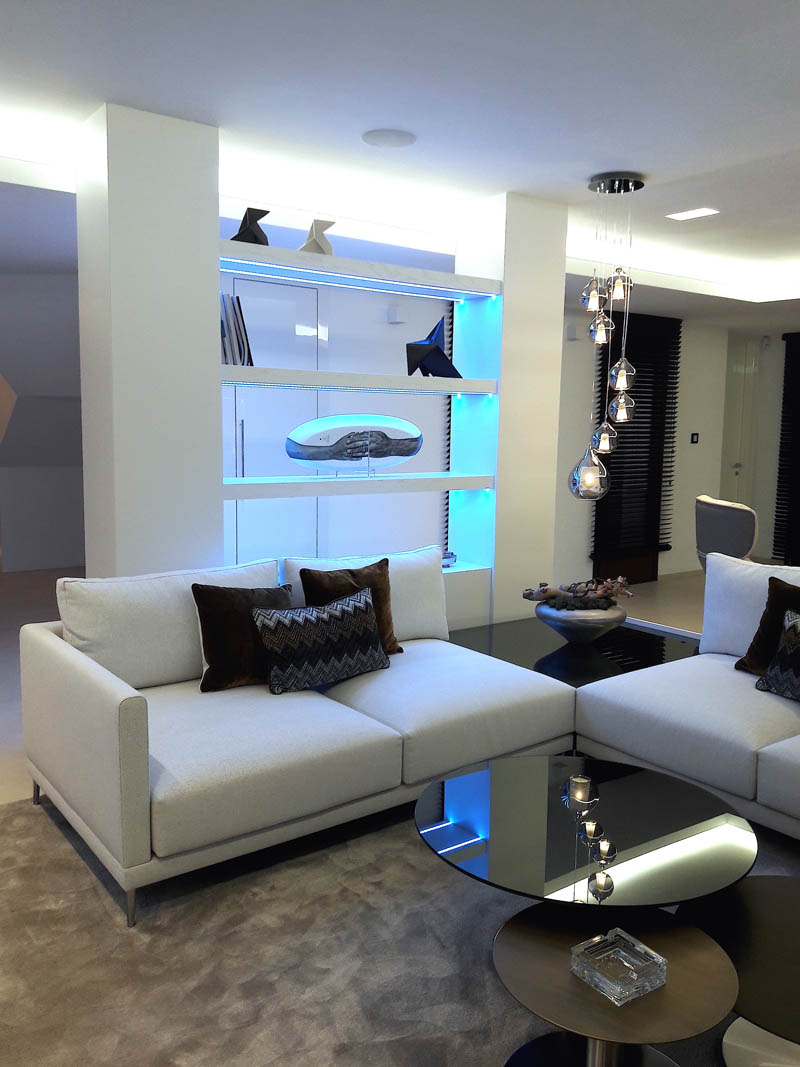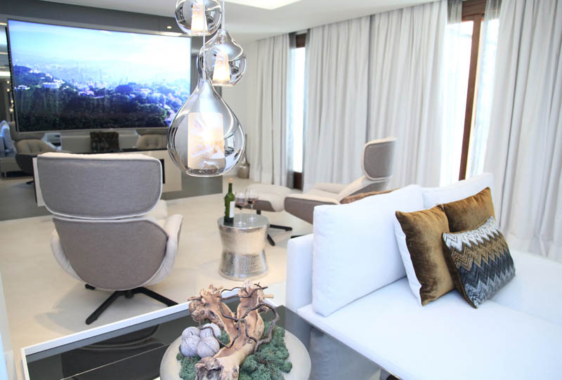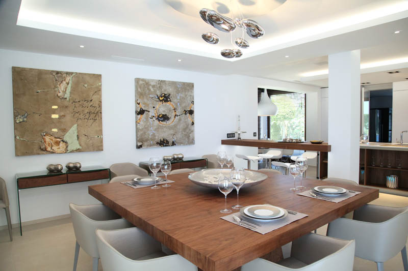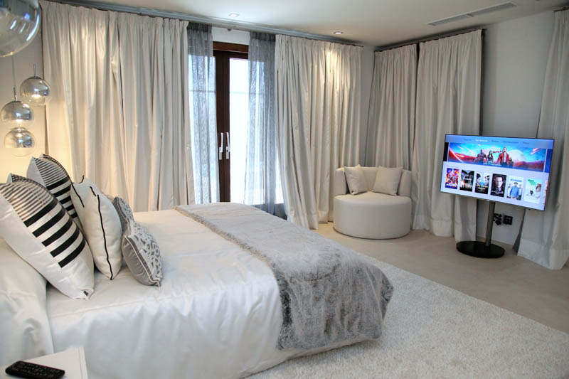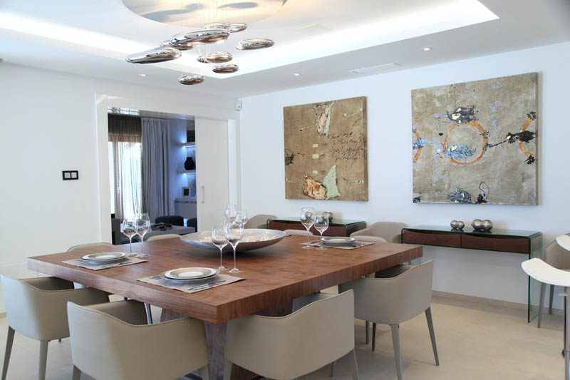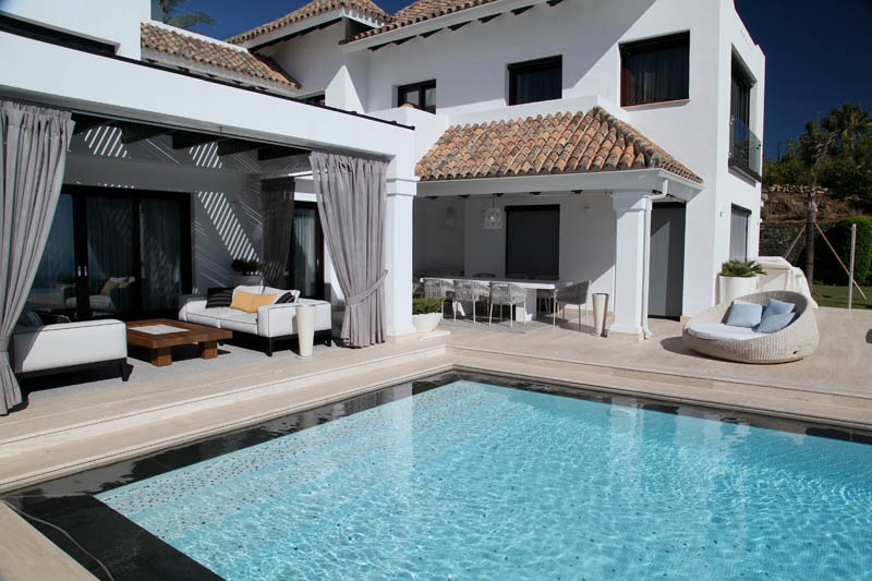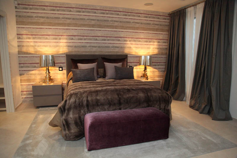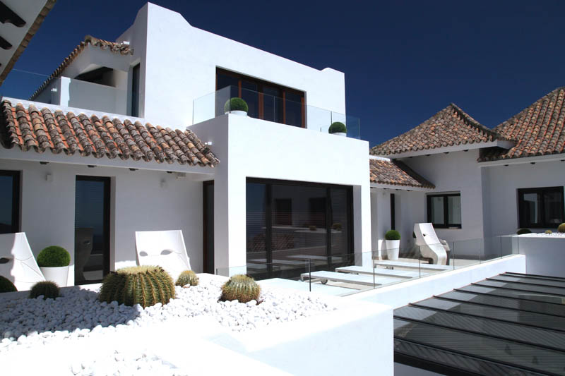 На этом объекте мы сотрудничали с известной испанской студией Юдизайн. Вилла в одном из самых живописных мест Новой Андалусии была перестроена из традиционного испанского дома. Во всех помещениях использован белый цвет стен. Он, как чистый лист, на котором яснее проявляются объемы и линии мебели, усиливаются оттенки тканей и декора. Все они должны быть сбалансированы и создавать гармоничное единство. В доме несколько спален, и каждая из них имеет свое настроение и свою цветовую гамму – монохромная бело-перламутровая с графичным текстильным декором, гостевые спальни разных оттенков.