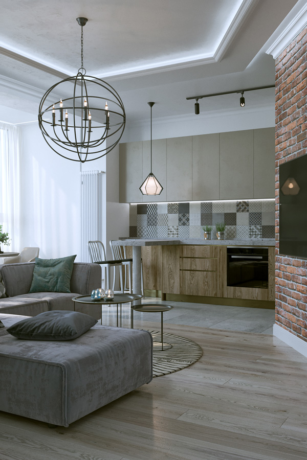 Свое новое жилье пара московских студентов хотели видеть в стиле лофт, при этом интерьер должен был прийтись по вкусу и их родителям - приверженцам более традиционных линий и пастельных оттенков.